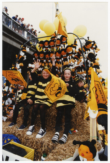 Children on a float dressed as bumble bees raising awareness of ...