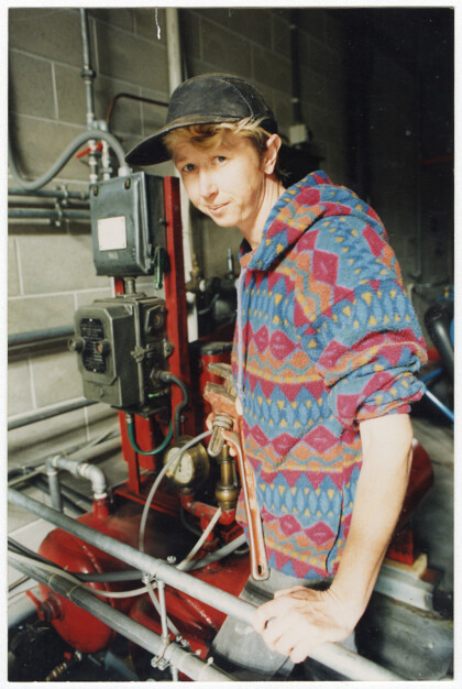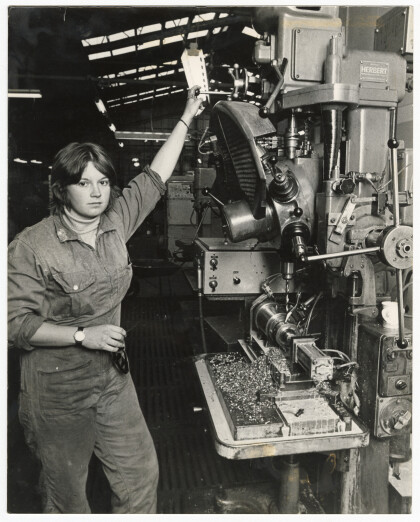 Lyn Boddington, apprentice fitter and turner, at Herbert drill.