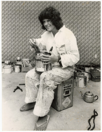 Donna Haupapa, apprentice paint and paper hanger, sitting with a ...