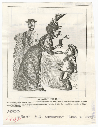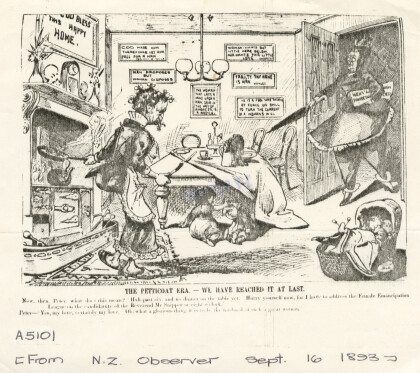 Cartoon on the enfranchisement of women. First published in 1894 ...