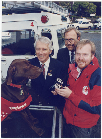 Red Cross search dog unit dog Whizz and unit leader Nigel Walker ...