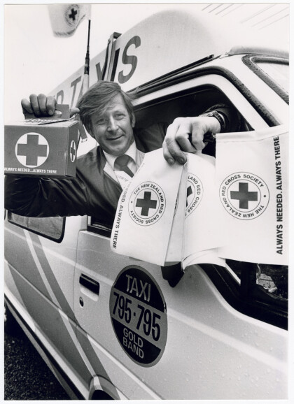 Gold Band taxi driver, Mr Graham Ilton, with a collection box ...