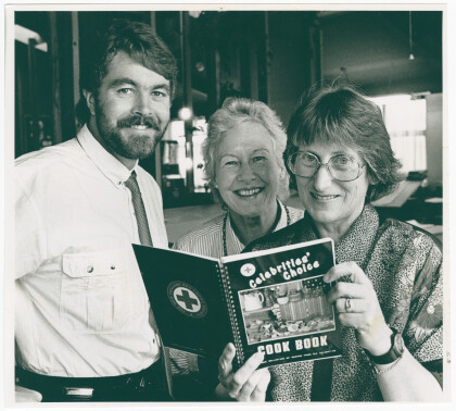 Red Cross volunteers with a charity cookbook