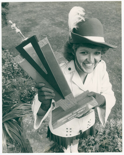 Trish Anderson with marching trophy