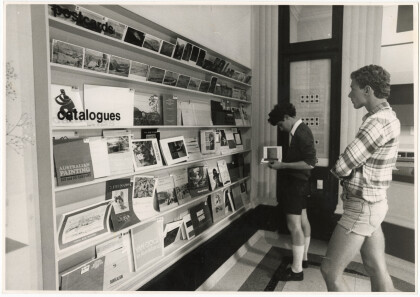 Catalogue and postcard shelves, Robert McDougall Art Gallery