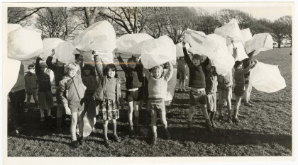 Pupils from Wharenui School setting off hot air balloons