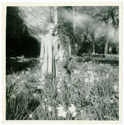 Margosue Penney and David Penney standing among daffodils in ...
