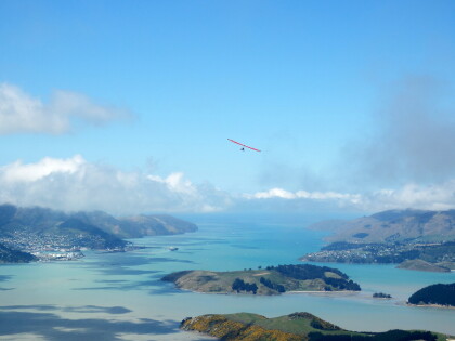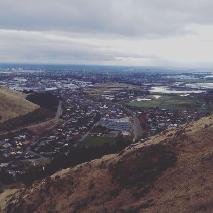 Sugarloaf tower and building on the Port Hills above Christchurch.