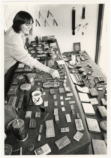 Mandy Clark with a display of old barber equipment at "Barbers" ...