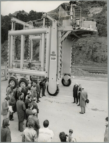 A Clark van carrier at Lyttelton Harbour shortly after being ...