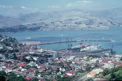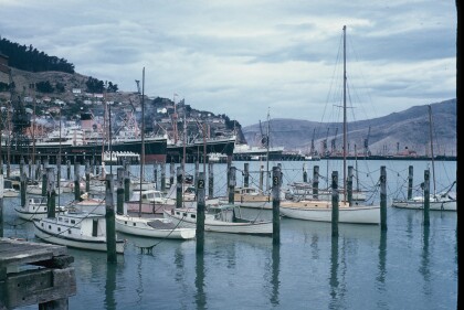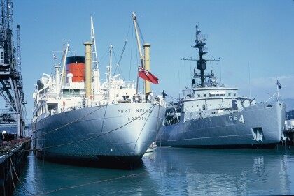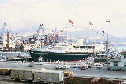 View of the Royal Yacht Britannia in Lyttelton for 1974 ...