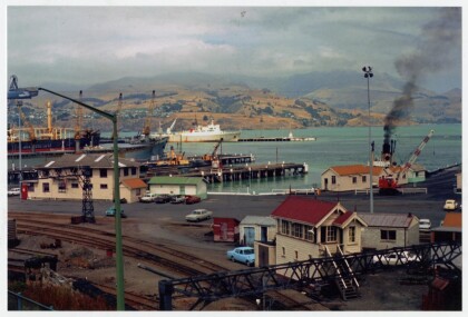 Lyttelton Harbour from the overbridge. Tug Lyttelton and an old ...