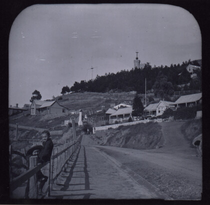 Two children on Sumner Road, with houses, Reserve Terrace and ...