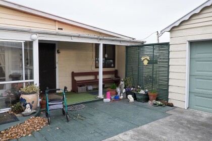 Door leading out of the kitchen at Patricia's home in Halswell.