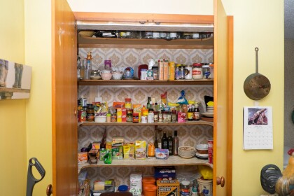 View of packaged food items in a pantry in Patricia's kitchen at ...