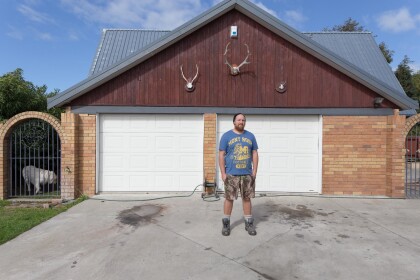 Isaac standing in his driveway