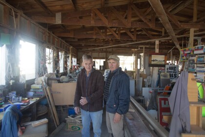 Friends, Bernard C and Bernard D in their workshop making ...