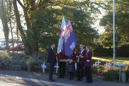 Scouts in uniform at the Halswell War Memorial during the Anzac ...