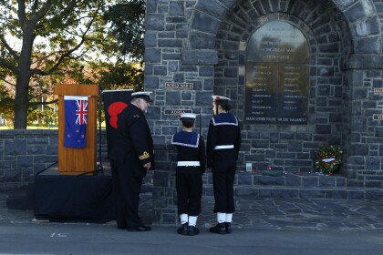 A cadet at the Halswell War Memorial during the Anzac Day ...