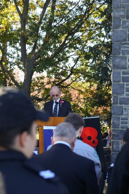 Ron, a war veteran, speaking at the Anzac Day service at 322 ...