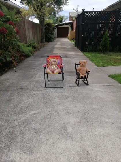 Teddies in the driveway