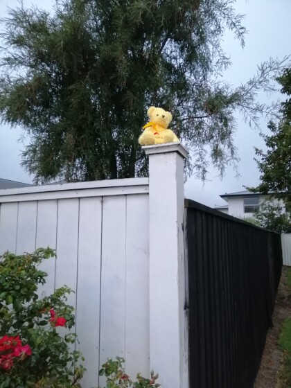 Teddies on guard in a driveway in Kennedys Bush Road, Halswell. ...