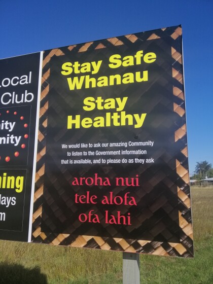 Corona virus warning at the entrance to Halswell Quarry.