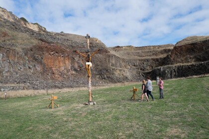 View of Halswell Quarry Park with a Jesus on the Cross in the ...