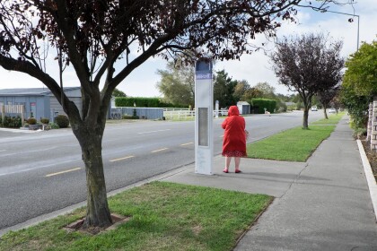 Woman waits at bus stop by 117 Dunbars Road between Stallion ...