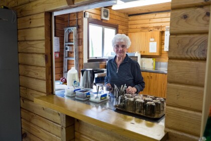 N. Tweed serves up refreshments for the Monday Movers after ...