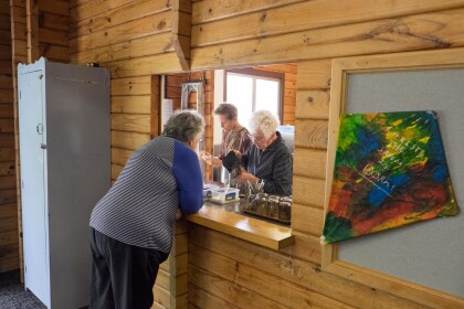 Two people preparing coffee and tea at the Little Steps group at ...