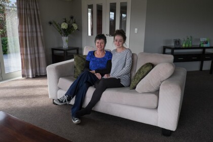 Karen and Natalie, mother and daughter, in the family lounge, ...