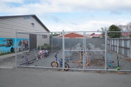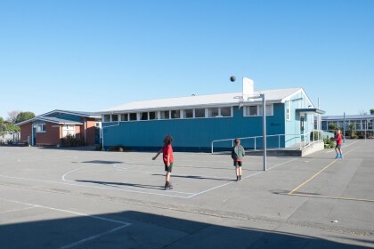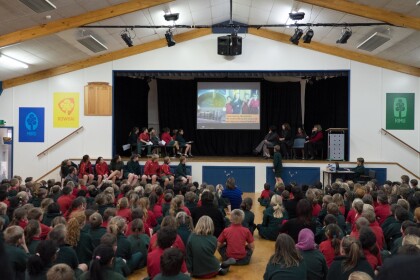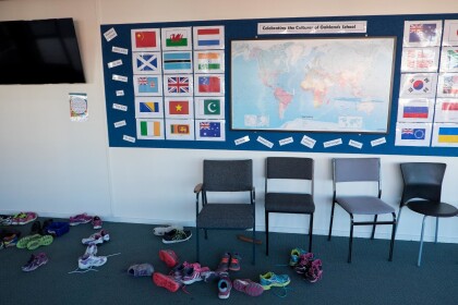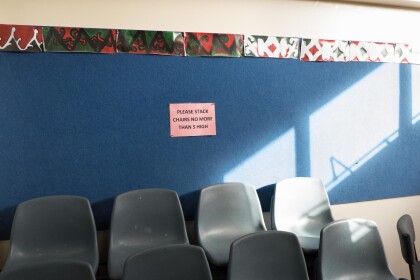 View of chairs stacked in the school hall at Oaklands Primary ...