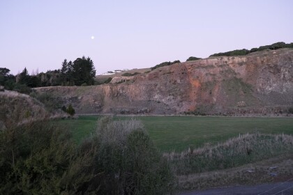 Halswell Quarry Park at sunset looking towards the basin of the ...