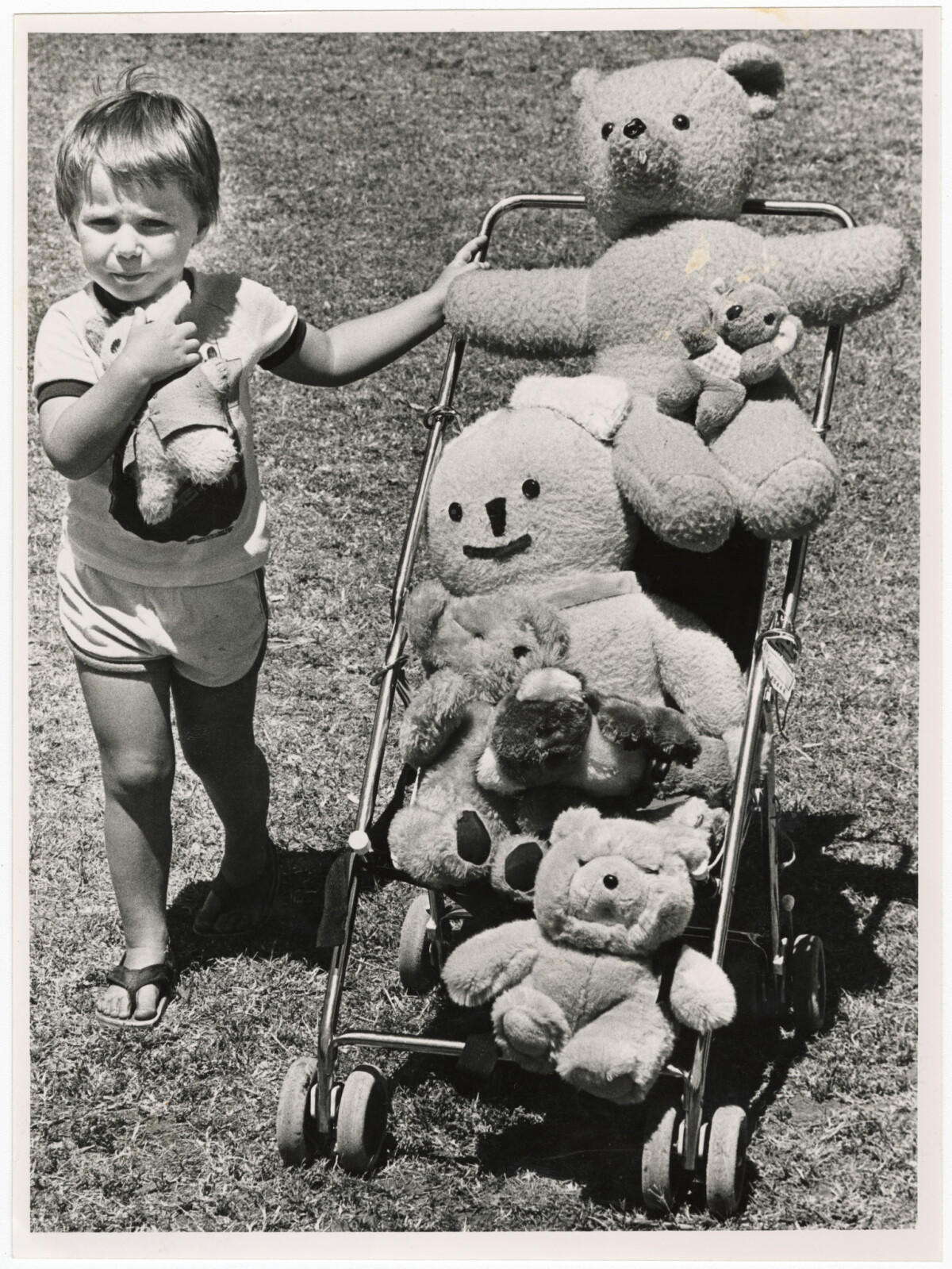 Matthew Richens with seven teddy bears at the Teddy Bears' Picnic.