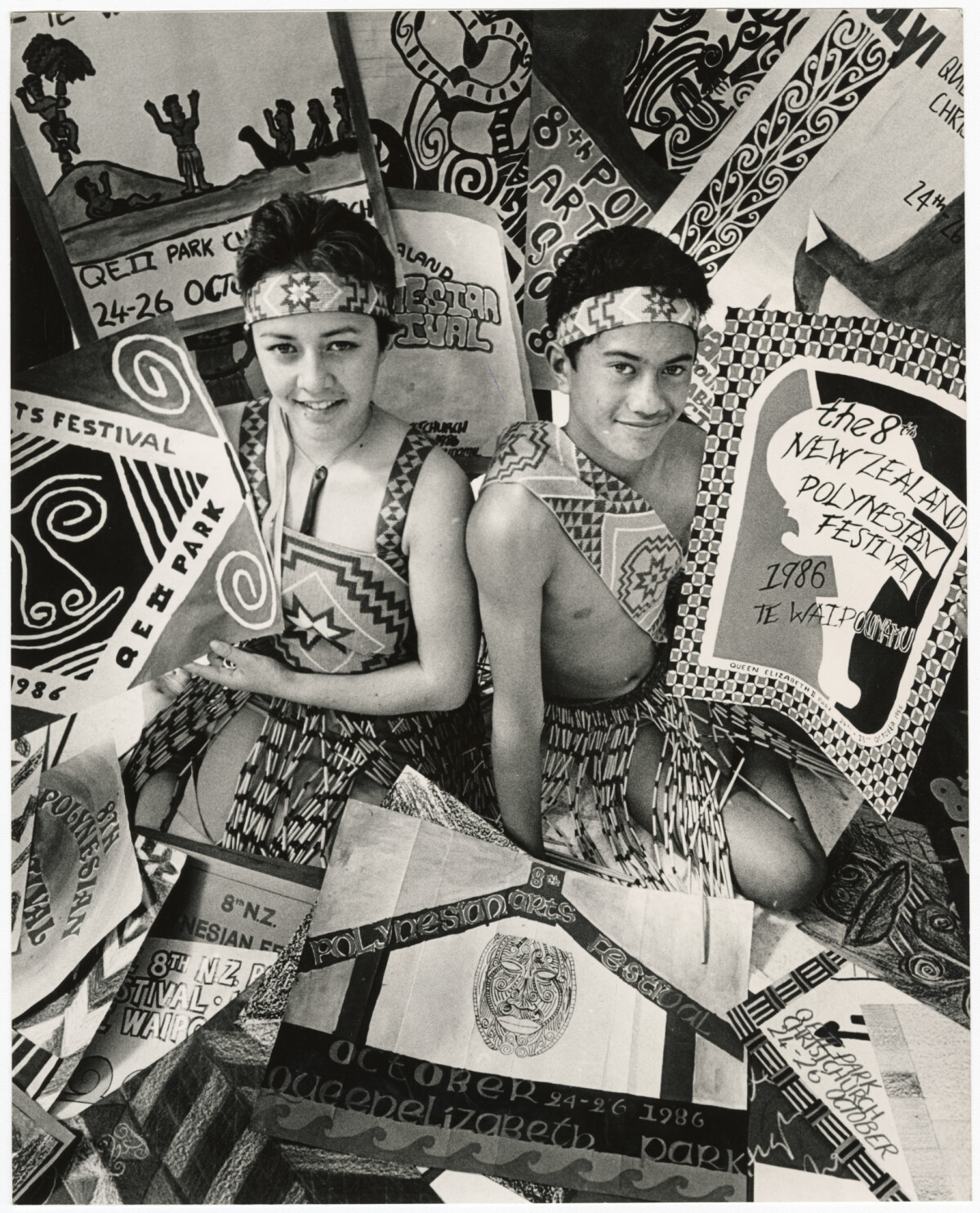 Kimi Jackson, 16, and Rihari Simeon, 13, of Aranui High School, with posters for the 8th New Zealand Polynesian Festival.