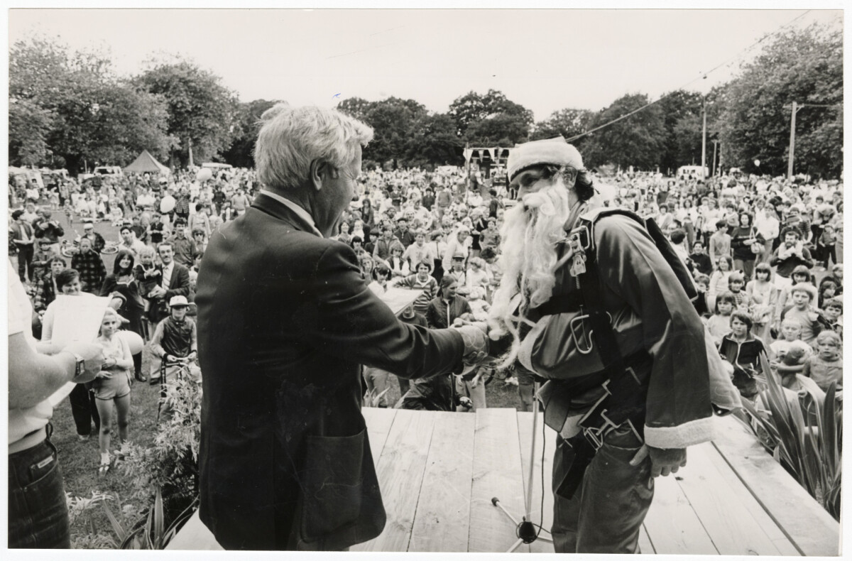 Hamish Hay shakes hands with Father Christmas at the Summer Times festival.
