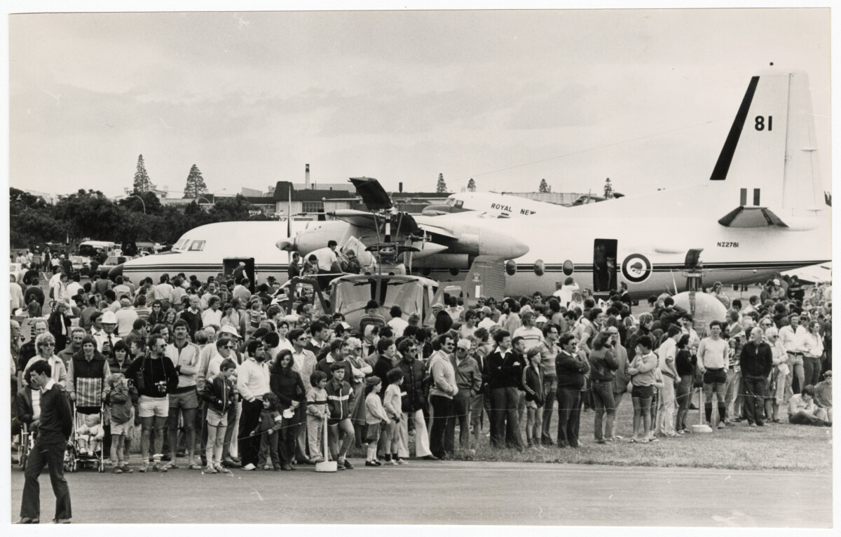 A crowd at Wings and Wheels airshow. Behind is a Fokker Friendship NZ2781.
