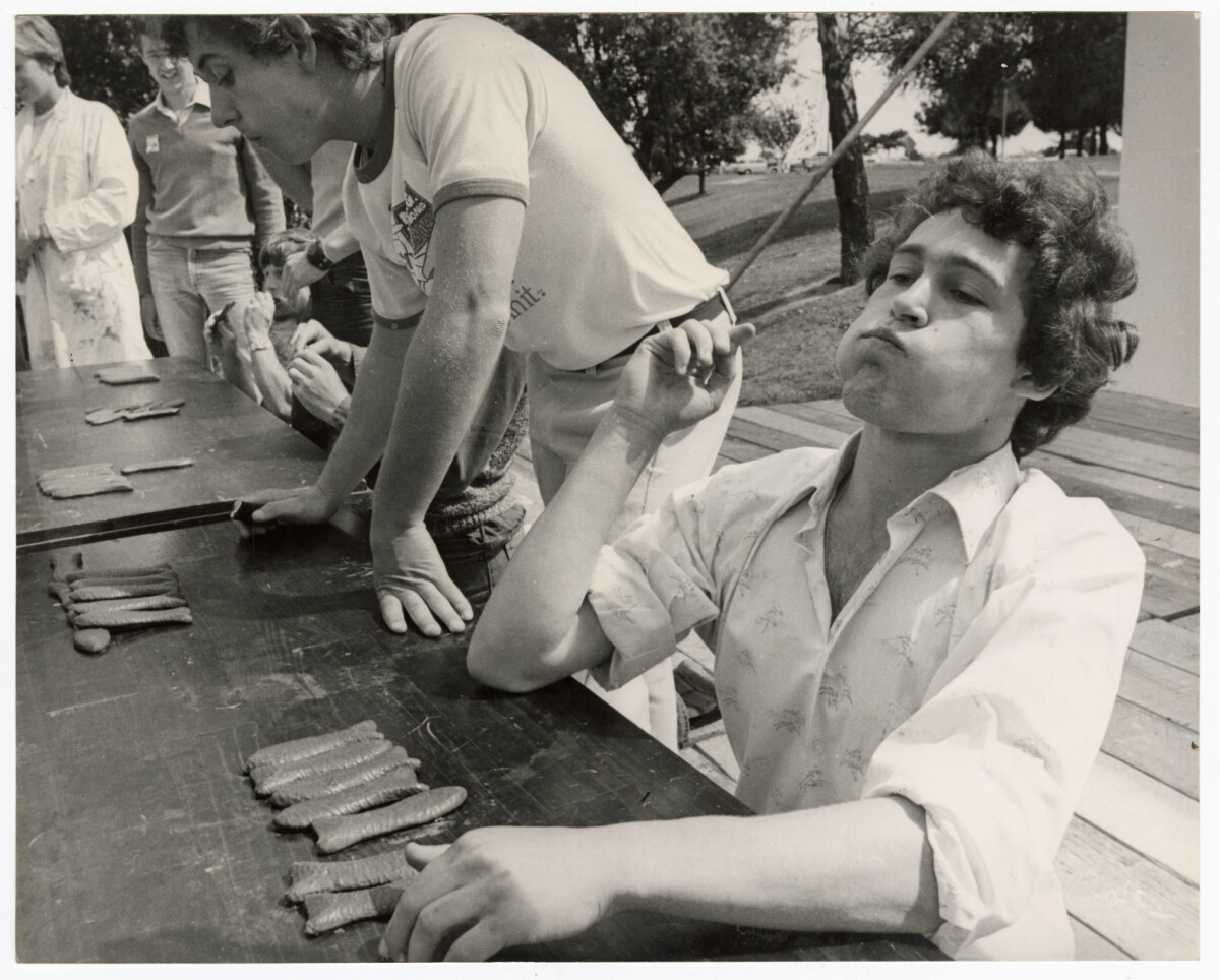 Tom Weston and Greg Fahey prepare for Orientation Week 1980