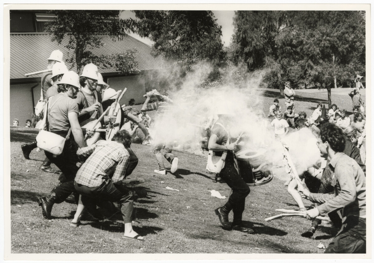 Members of Alf's Imperial Army confront members of KAOS at the University of Canterbury orientation.