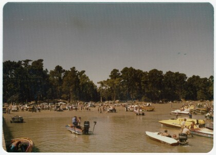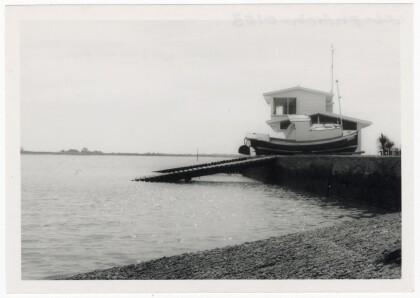 View of motor boats moored at the Estuary at South New Brighton, ...