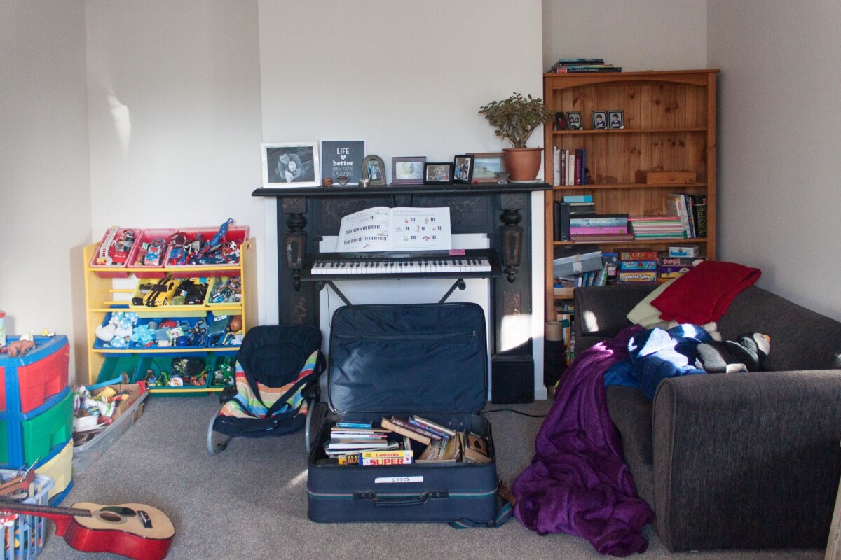 Interior of the children's playroom, at Shanna's house on Marine Parade in New Brighton. The playroom features books and toys.