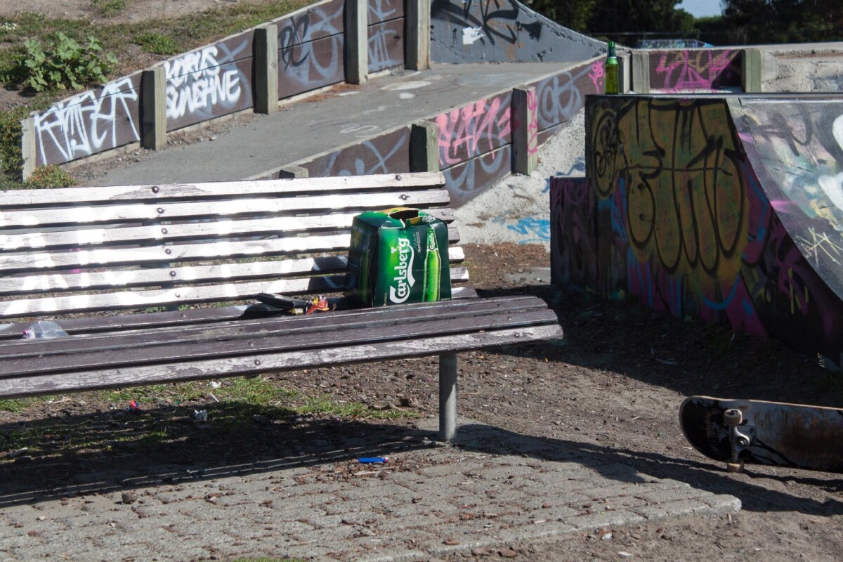 A box of beer brought in by skateboarders at Thompson Park, New Brighton.