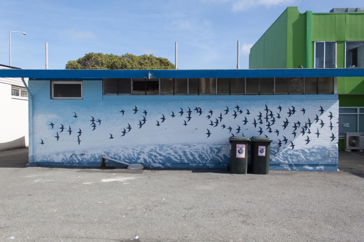 View of street art on the side of the public toilets at 179 Shaw Avenue in New Brighton.