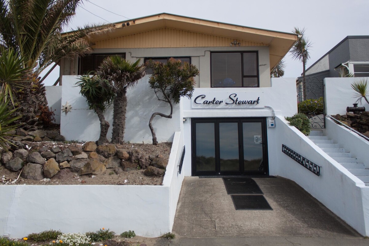 Exterior of the Carter Stewart Gallery at 416 Marine Parade, South New Brighton. Carter Stewart is a New Zealand jewellery business, gallery and private house.