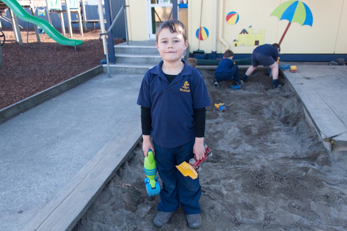 Students playing in the sand pit at South New Brighton School at 160 Estuary Road, South New Brighton.