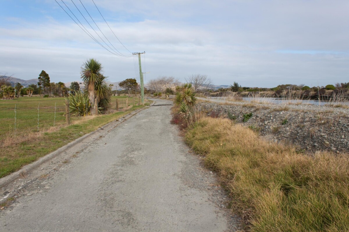 View on Admirals Way in the residential red zone in New Brighton, looking towards Sumner.