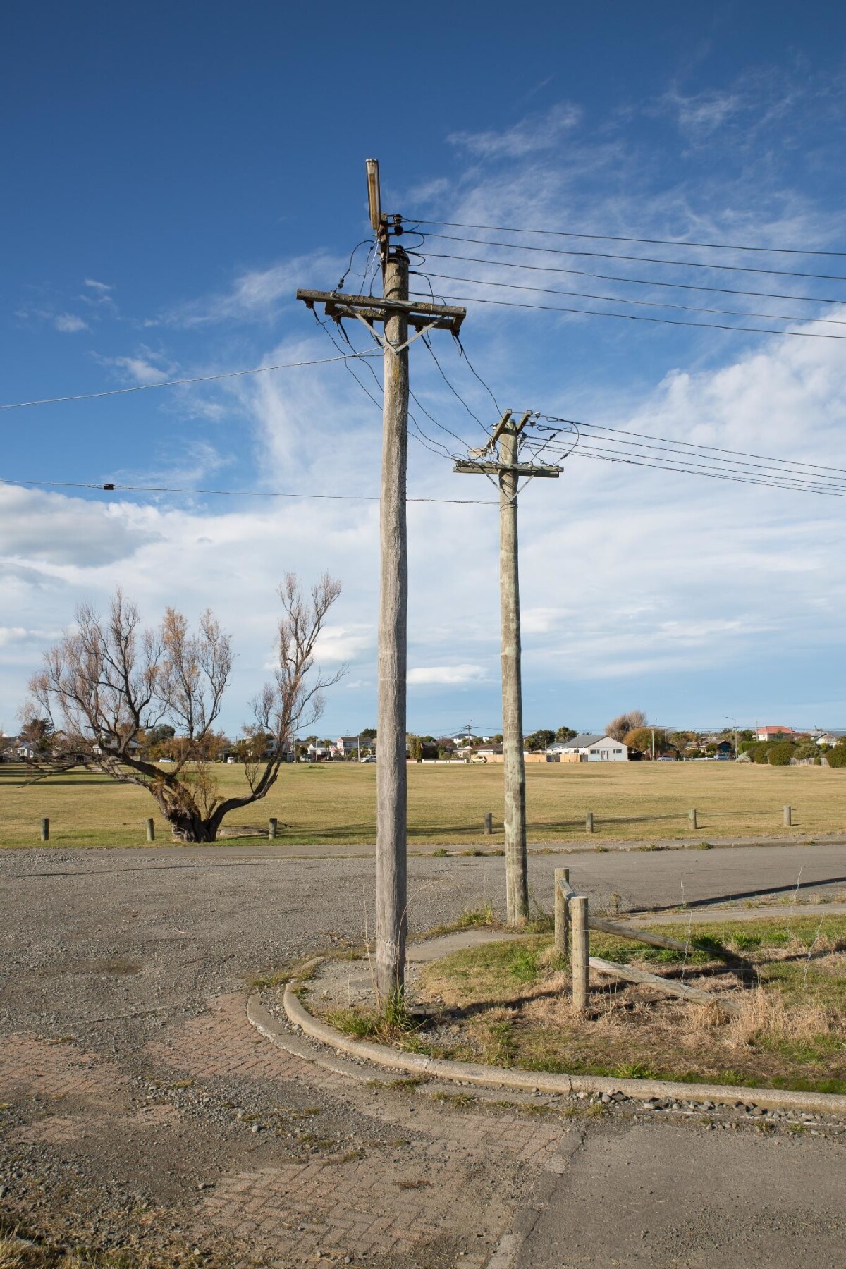 Electricity wires on the corner of a street in the Residential Red Zone in New Brighton.
