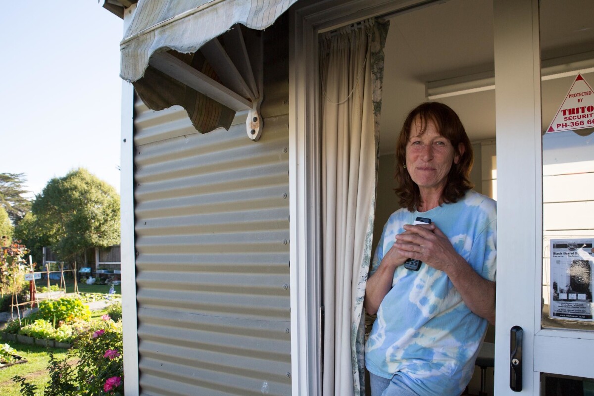 Catherine, the New Brighton Community Gardens' coordinator stood in a building next to the gardens at 136 Shaw Avenue in New Brighton.