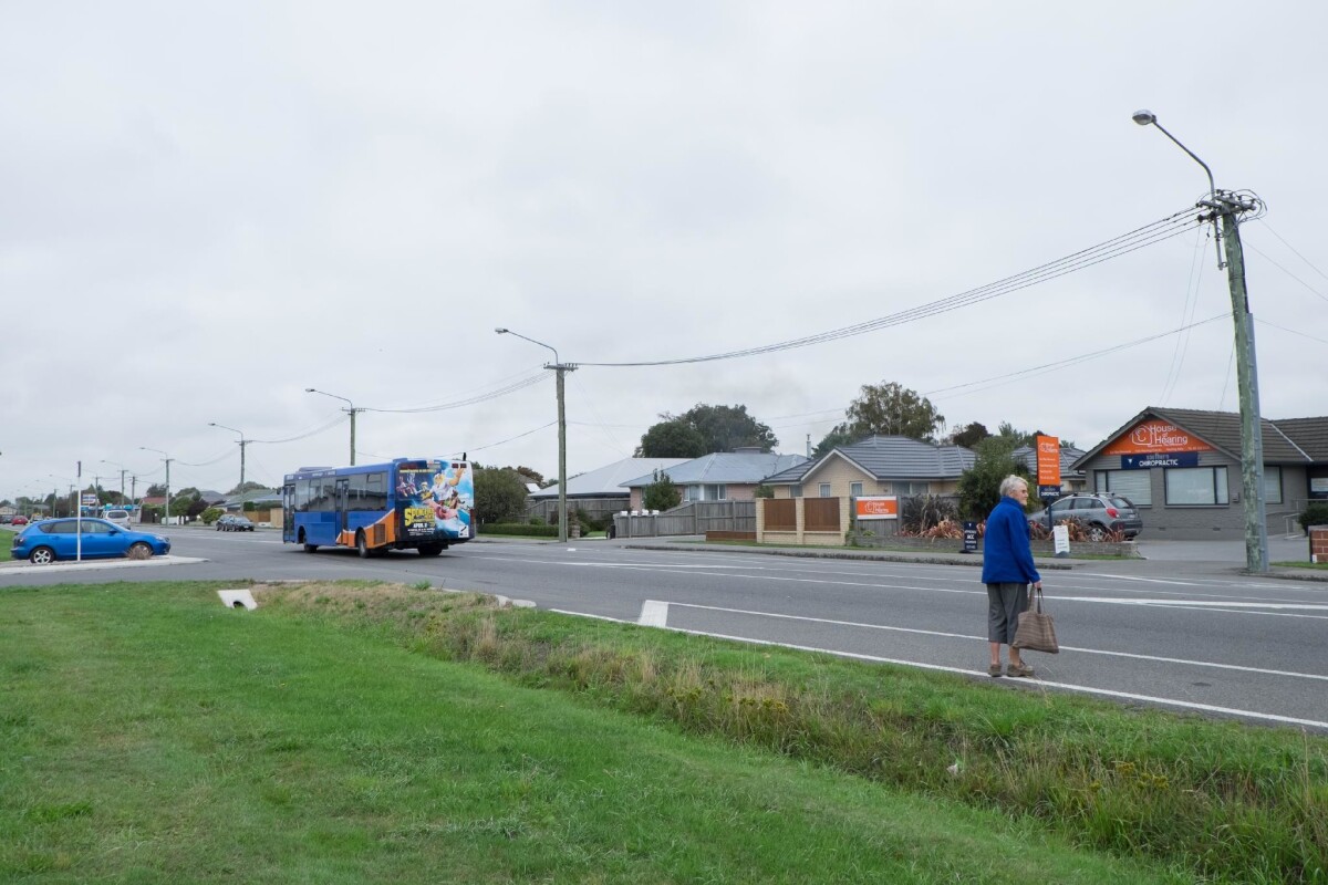 Woman who has just got off bus on Halswell Road between Milns Road and Parklea Avenue, Halswell.